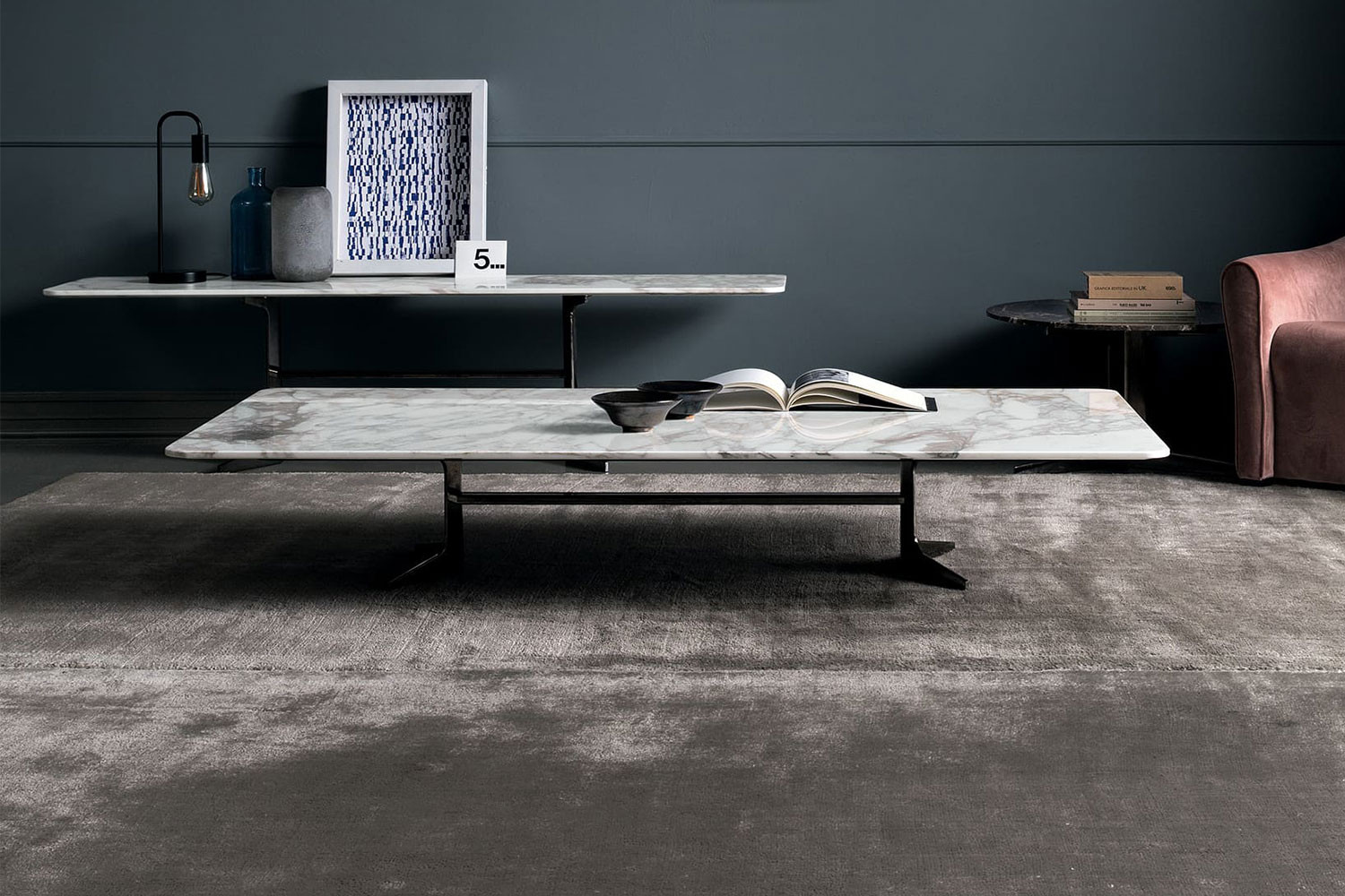 The legs come in black matt lacquered solid wood and sport a skillfully made criss-cross structure supporting the seat. The elements that make this armchair a truly unique object are the legs that overstep their boundaries and extend beyond the seat shell.