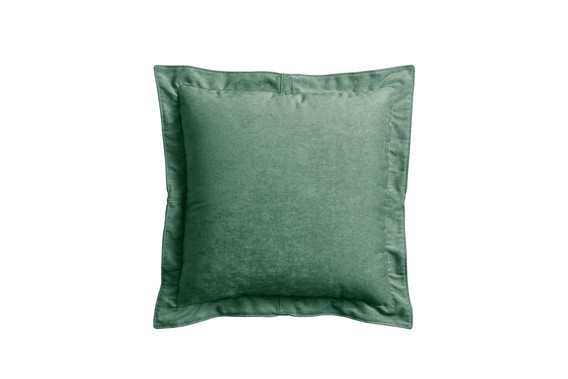 Coussin d’ameublement à volant plat et tendu, en teinte unie ou bicolore, idéal pour compléter un canapé moderne avec ses dimensions carrées de 45x45 ou 55x55 cm et revêtement en tissu, velours ou cuir.