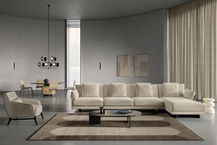 Novità della collezione imbottiti, Fly è un programma di sedute modulari creato in esclusiva per Bodema dal designer italiano Michele Mantovani. Il progetto nasce dalla volontà di realizzare un divano da salotto capace di rispondere alle esigenze di spazio e comfort tipiche dei contesti abitativi contemporanei, spesso caratterizzati da open space, zone giorno a vista e ambienti condivisi. Fly è infatti disponibile sia nel modello lineare standard, sia nella versione configurabile con elementi singoli e accessori. Se la variante fissa offre divani da 200, 220, 240, 260 o 275 cm, è nella proposta componibile che l'imbottito raggiunge il massimo della personalizzazione. Divani lunghi più di 4 metri, con penisola, con angolo aperto, con pouf laterale, con piano in cuoio o con un solo bracciolo sono solo alcune delle possibilità compositive previste dalla collezione.
