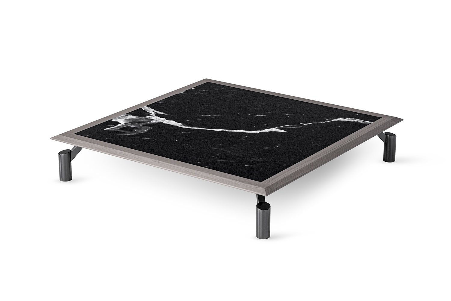 Fly è un tavolino da salotto quadrato con piano in marmo e in legno massello, un complemento basso con piedini in metallo proposto nelle varianti con lato da 100 cm e da 120 cm, ideale sia in contesti residenziali che in ambienti contract dallo stile moderno.
